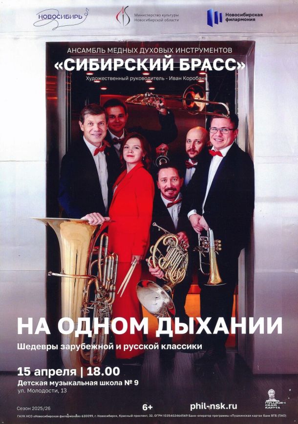 Продолжаем сезон концертов Новосибирской филармонии в ДМШ №9 — 15 апреля концерт ансамбля медных духовых инструментов «Сибирский Брасс»