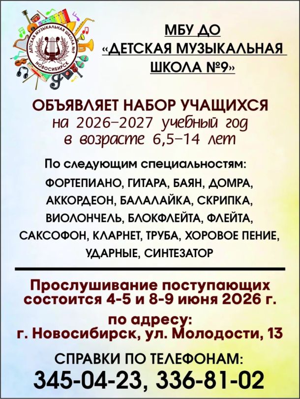 ДМШ №9 объявляет набор учащихся на 2026-2027 учебный год!