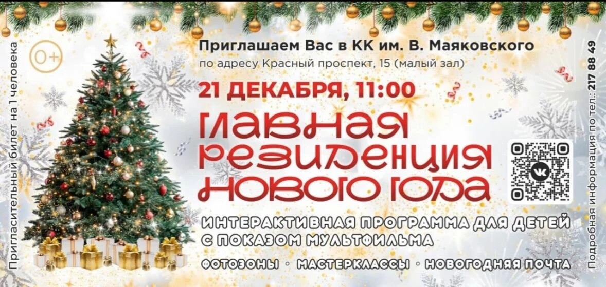 Концертный комплекс имени Маяковского приглашает 21 декабря в 11:00 в Главную резиденцию Нового года в Новосибирске!