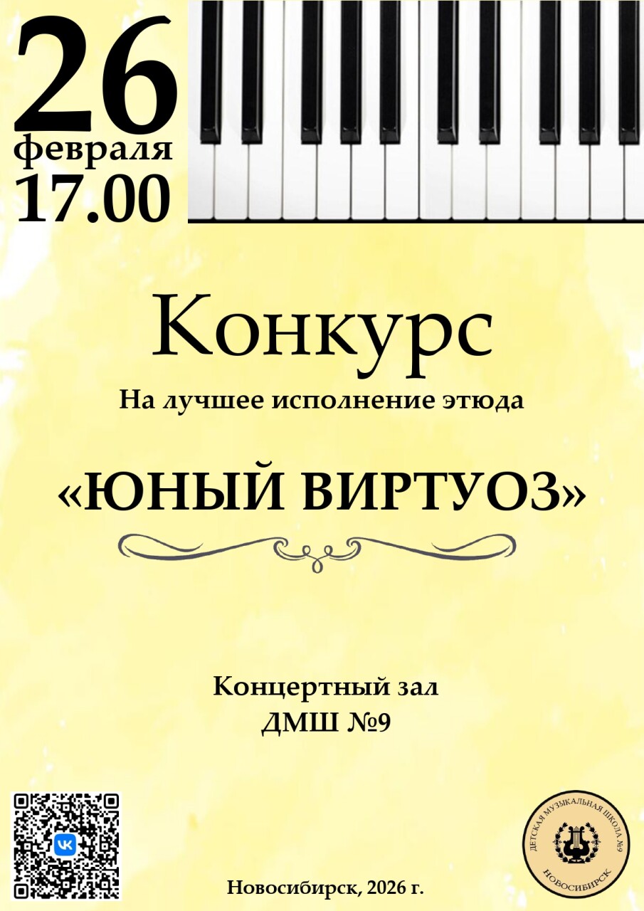 26 февраля в 17:00 в концертном зале нашей школы состоится школьный конкурс на лучшее исполнение этюда «Юный виртуоз».