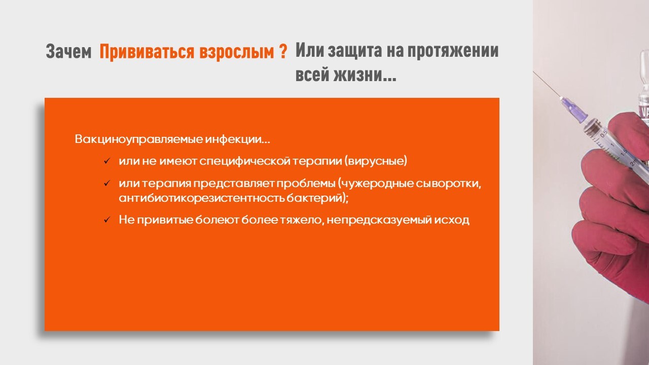 Это краткий материал о важности прививок во взрослом возрасте и заботе о своём здоровье.